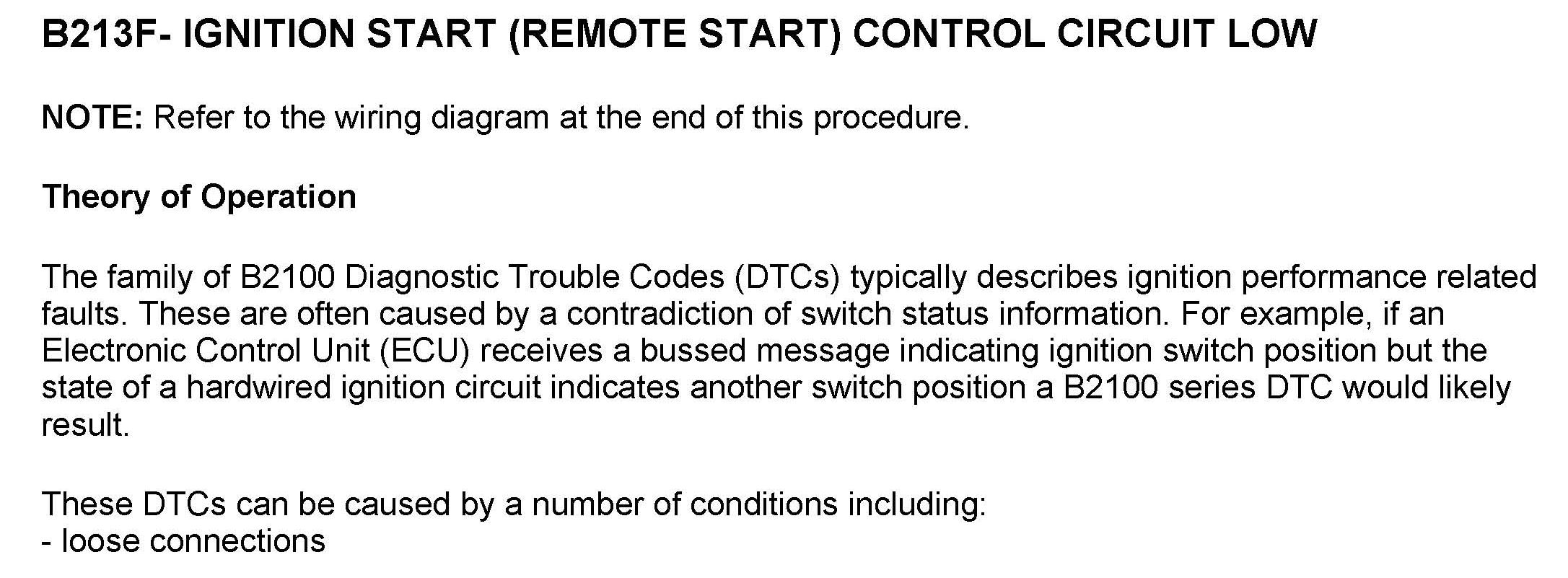 DTC B213F Ignition Start (Remote Start) Control Circuit Low