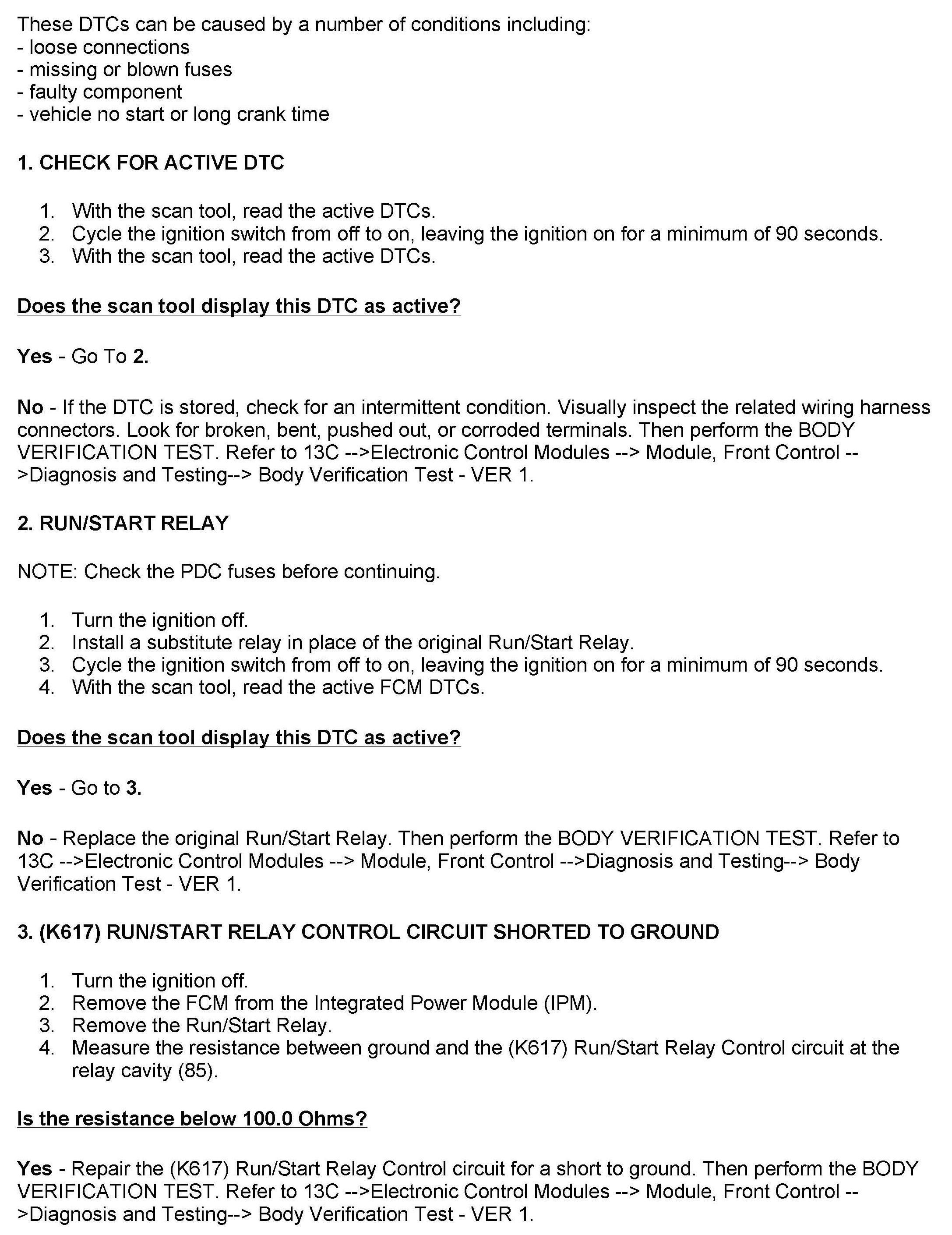 Diagnosis procedures for the DTCs listed below are missing in Raider service manuals. This bulletin provides these DTC diagnosis procedures for affected vehicles. This information should be added to Group 13C Electronic Control Modules under Electrical Diagnosis Diagnosis and Testing.