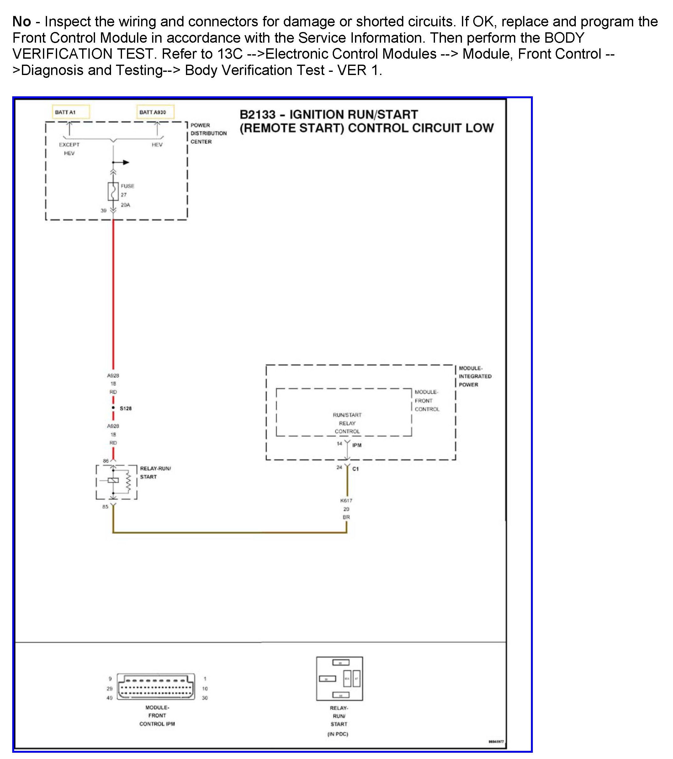 DTC B2133 Ignition Run/Start (Remote Start) Control Circuit Low