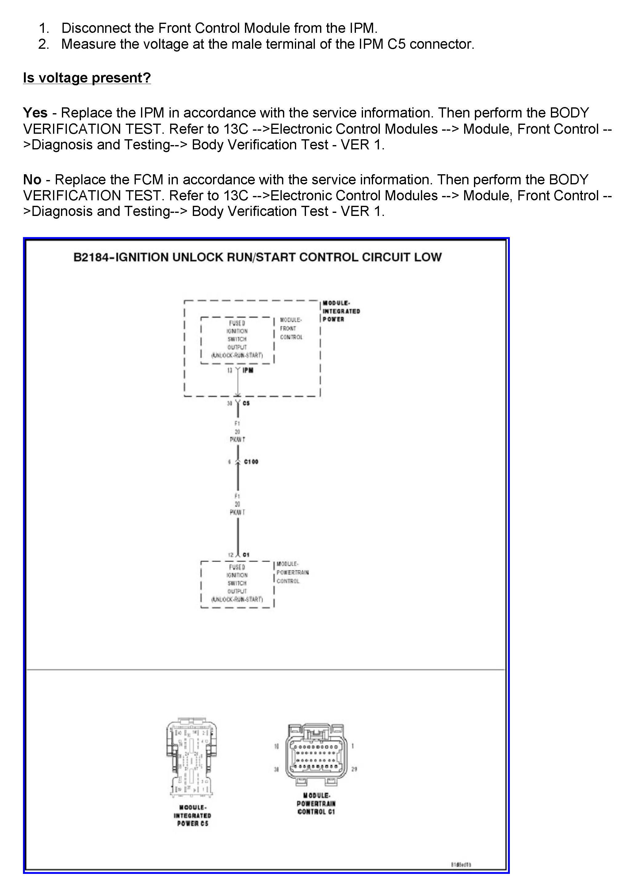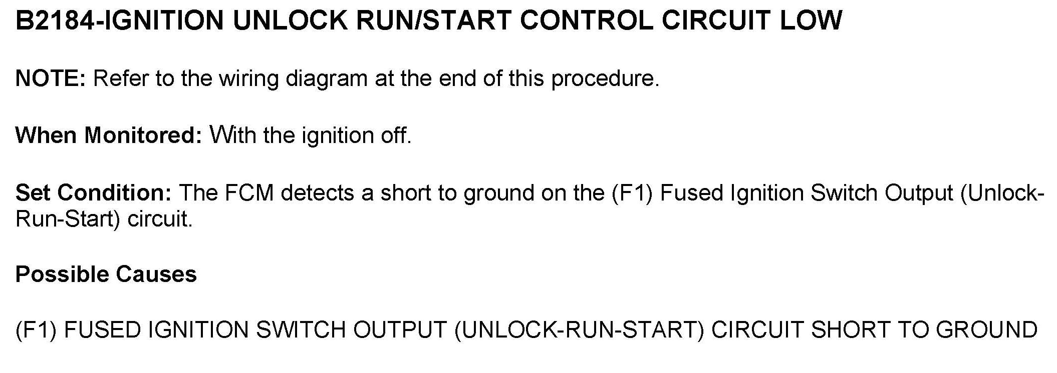 DTC B2184 Ignition Unlock Run/Start Control Circuit Low
