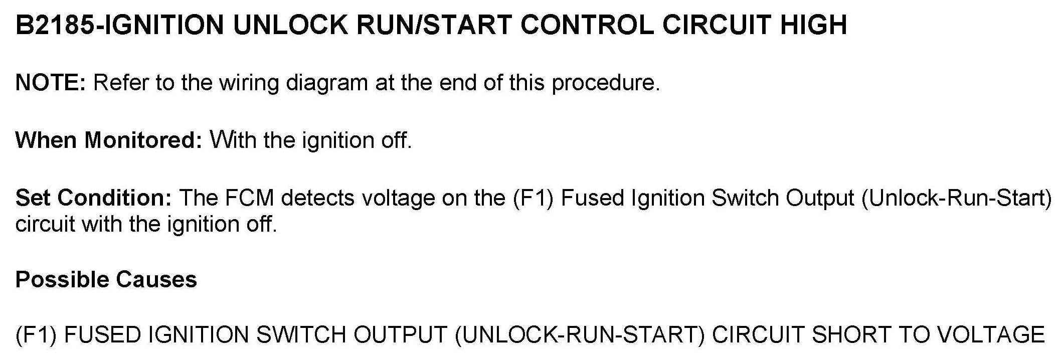 DTC B2185 Ignition Unlock Run/Start Control Circuit High