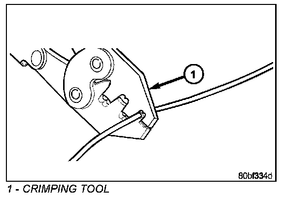 4. Using a crimping tool (1), crimp the splice clip and wires together.