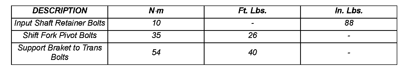 TORQUE SPECIFICATIONS (Part 1):