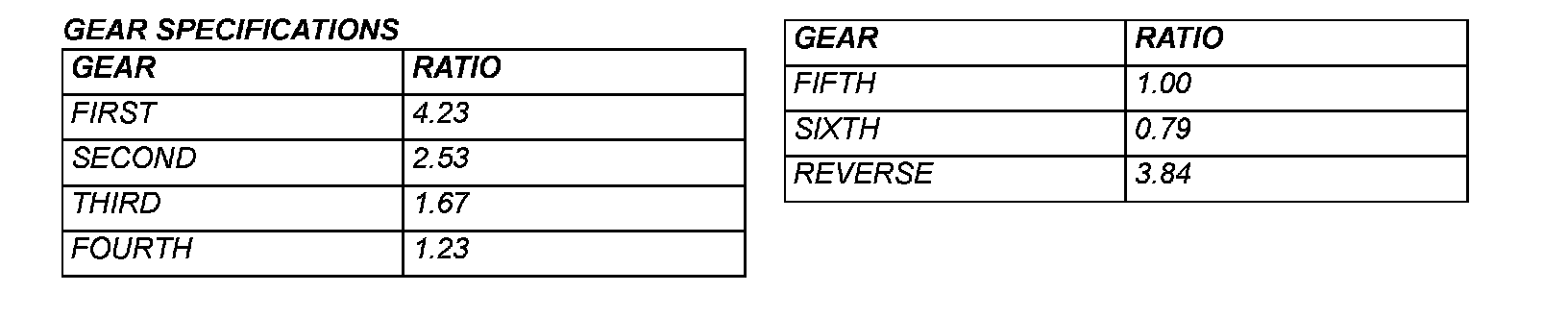 GEAR SPECIFICATIONS: