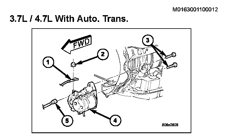 4. Remove two bolts (3) if equipped with an automatic transmission.
