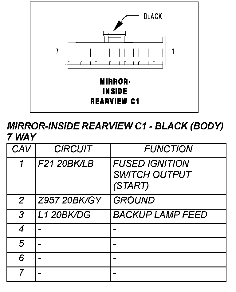 Mirror-Inside Rearview C1 - Black (Body) 7 Way: