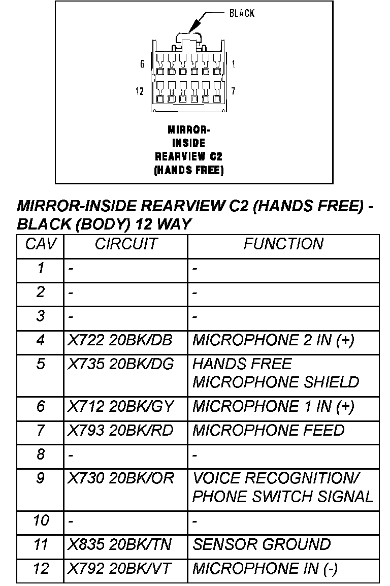 Mirror-Inside Rearview C2 (Hands Free) - Black (Body) 12 Way: