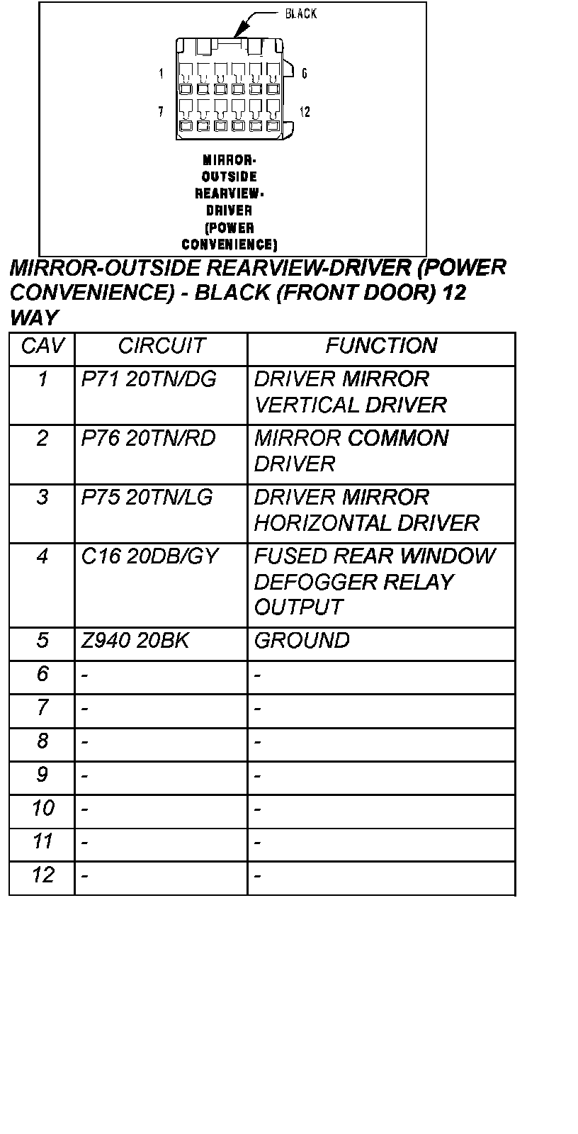 Mirror-Outside Rearview - Driver (Power Convenience) - Black (Front Door) 12 Way: