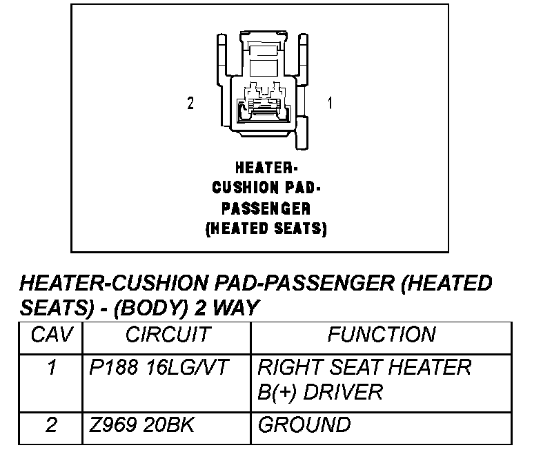 Heater-Cushion Pad-Passenger (Heated Seats) - (Body) 2 Way: