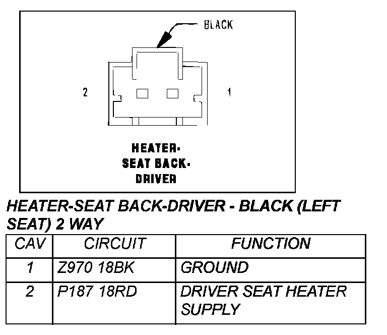 Heater-Seat Back-Driver - Black (Left Seat) 2 Way: