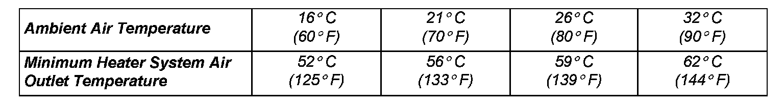 Engine coolant is delivered to the heater core through two heater hoses. With the engine idling at normal operating temperature, set the temperature control to the full hot position, the mode control to the floor position, and the blower motor control to the highest speed position. Using a test thermometer, check the temperature of the air being discharged at the HVAC housing floor outlets. Compare the test thermometer reading to the Heater Temperature Reference chart.