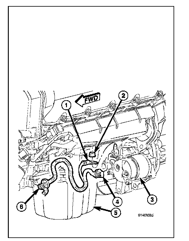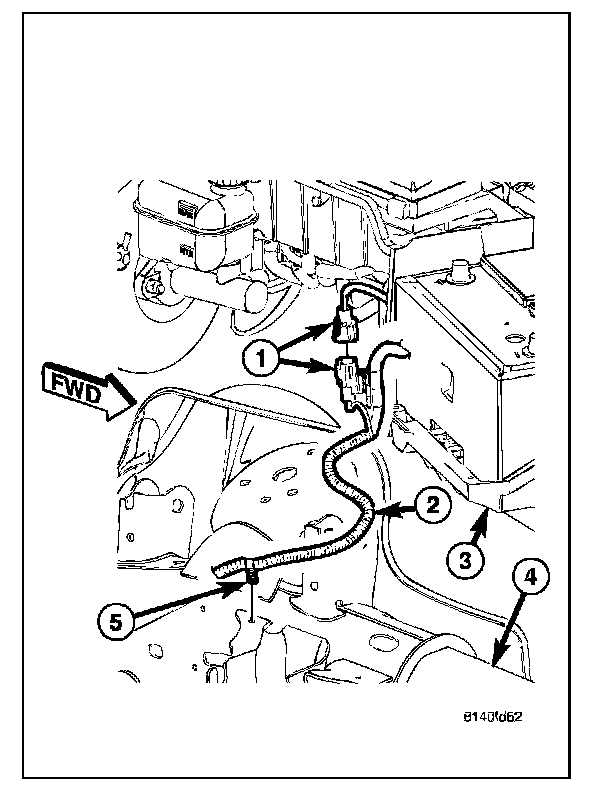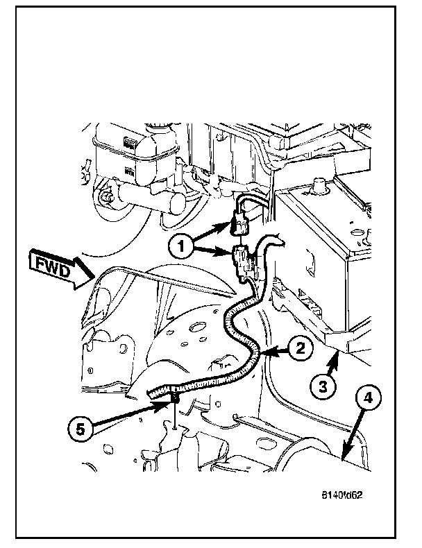 8. Disconnect the battery cable retaining pushpin (5) securing the cable to the left frame rail (4).
