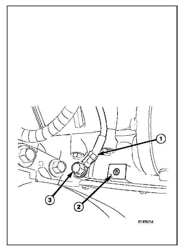 5. Install the bolt (3) securing the negative cable (1) to the engine block (2). Tighten the bolt to 16.5 N-m (145 in. lbs.).