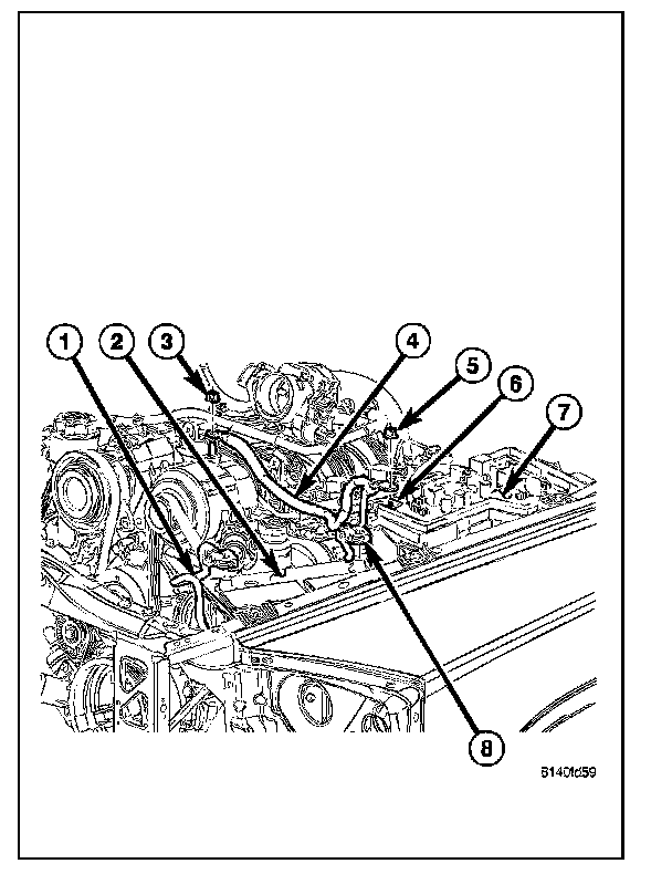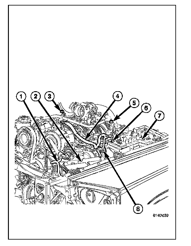 1. Position the battery positive cable (4 and 8) in the vehicle.