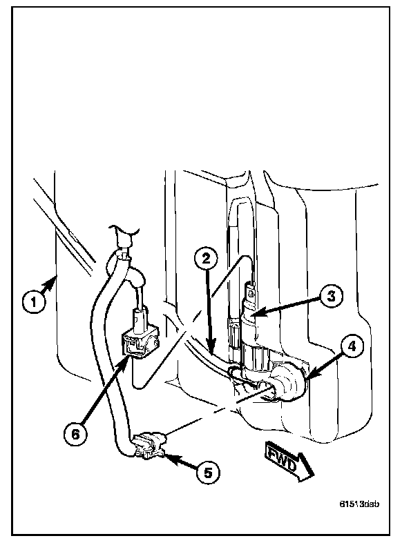REMOVALNOTE: The washer fluid level switch can be removed from the washer reservoir without removing the reservoir from the vehicle.