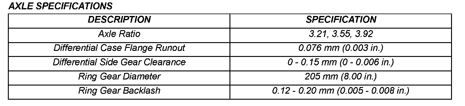 AXLE SPECIFICATIONS (Part 2):
