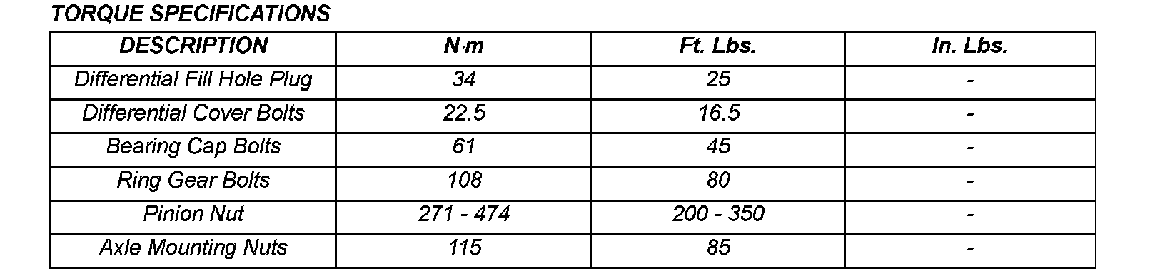 TORQUE SPECIFICATIONS: