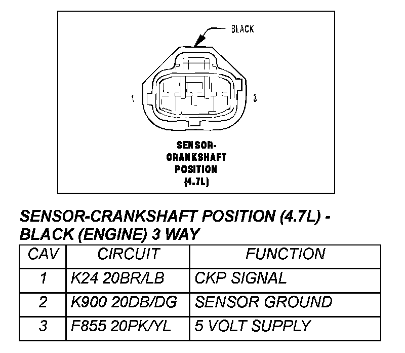 Sensor-Crankshaft Position (4.7L) - Black (Engine) 3 Way: