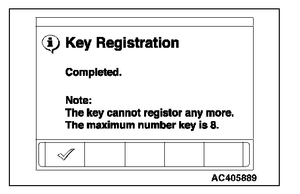 10. A maximum of eight ignition keys can be registered. When the registration of the eighth ignition key is finished, key registration completion menu is displayed. Press the OK button and finish the ignition key registration.