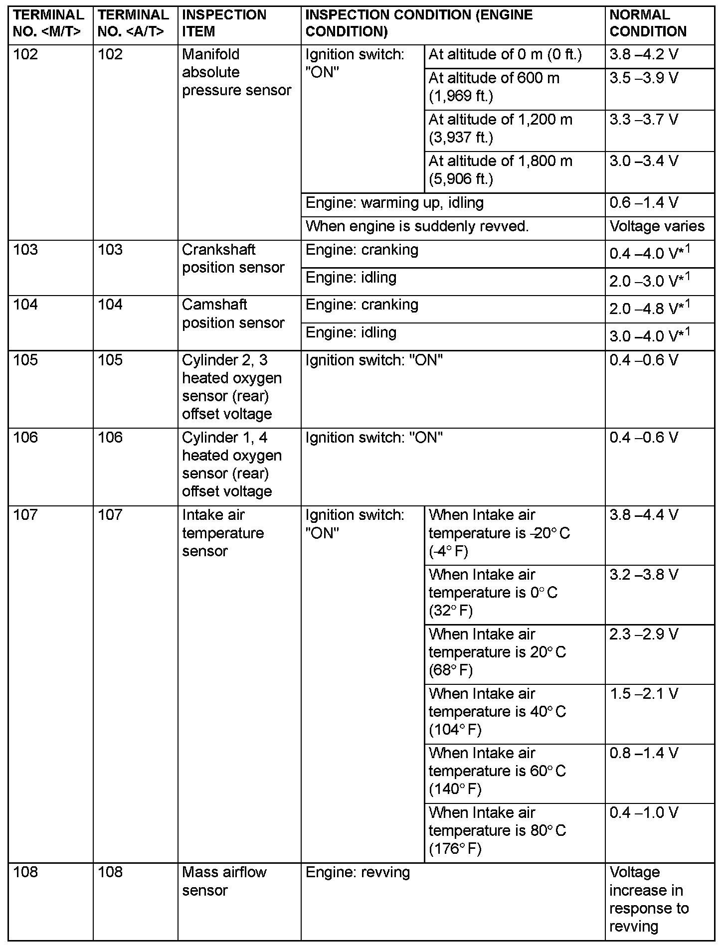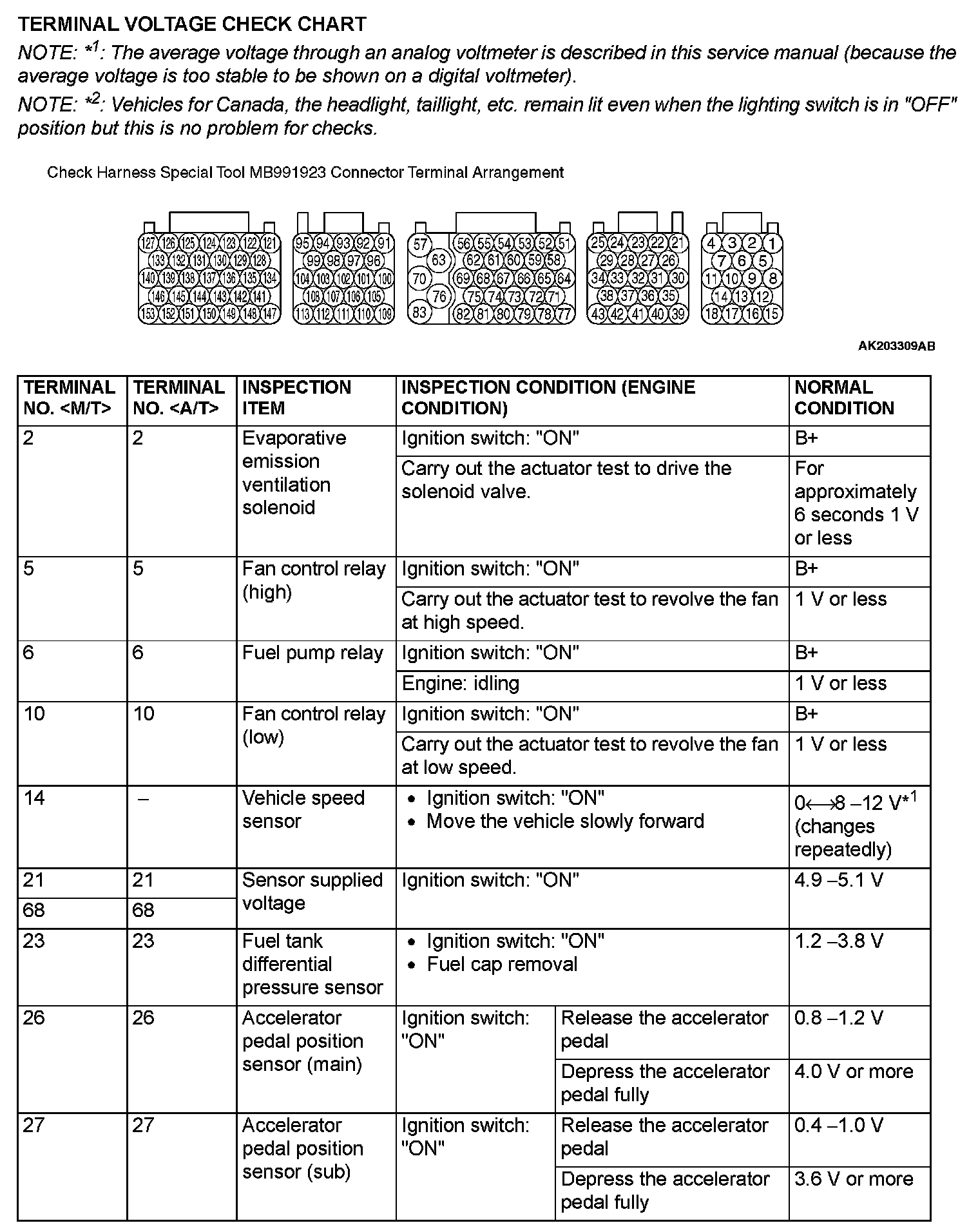 Terminal Voltage Check Chart (Part 1):