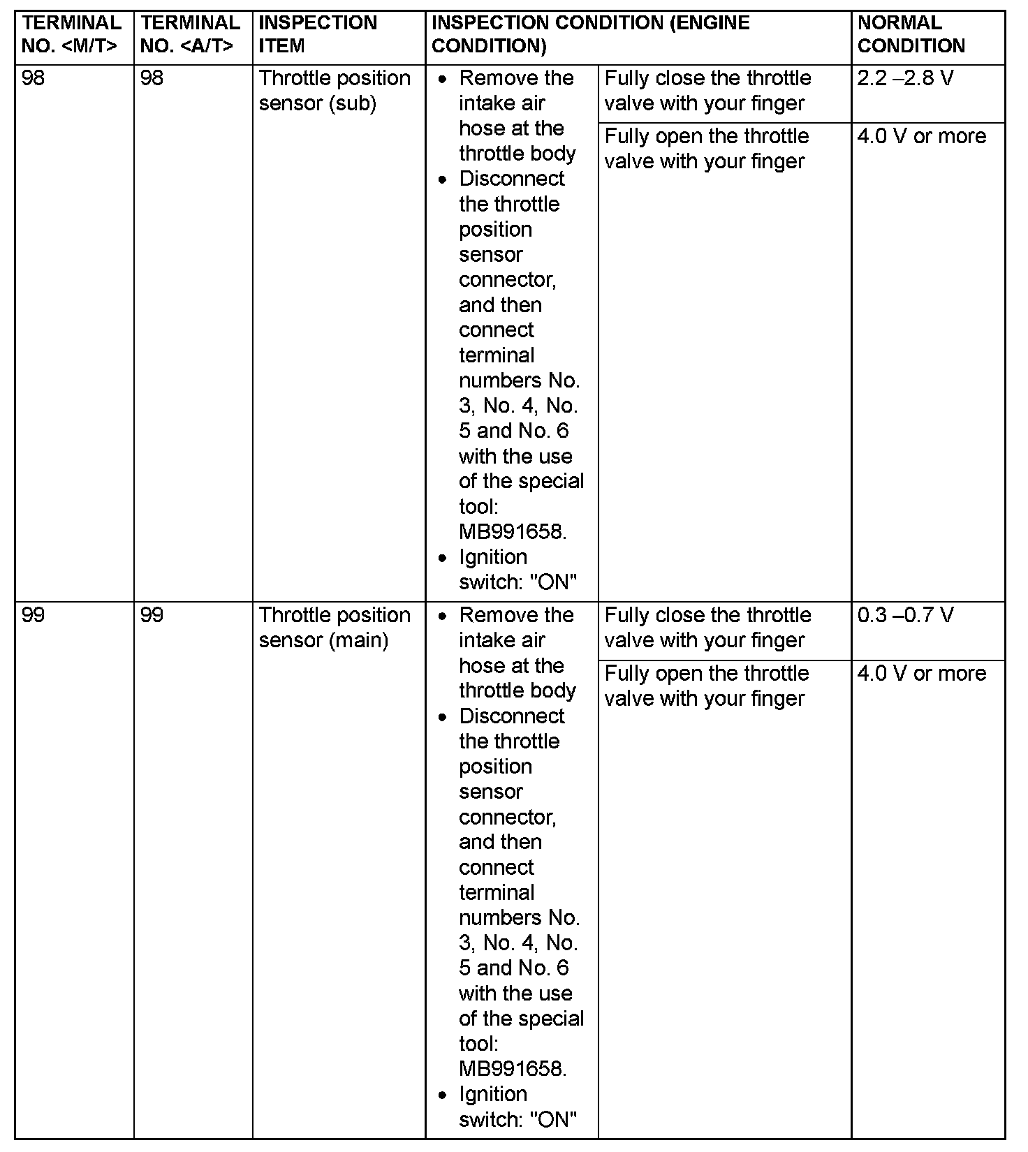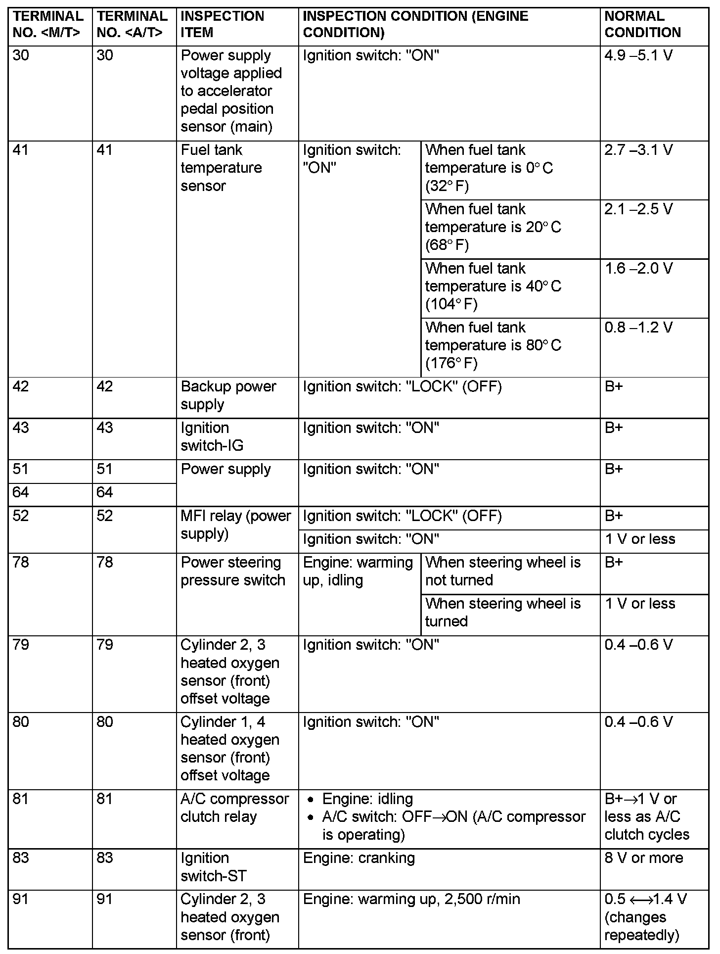 Terminal Voltage Check Chart (Part 7):