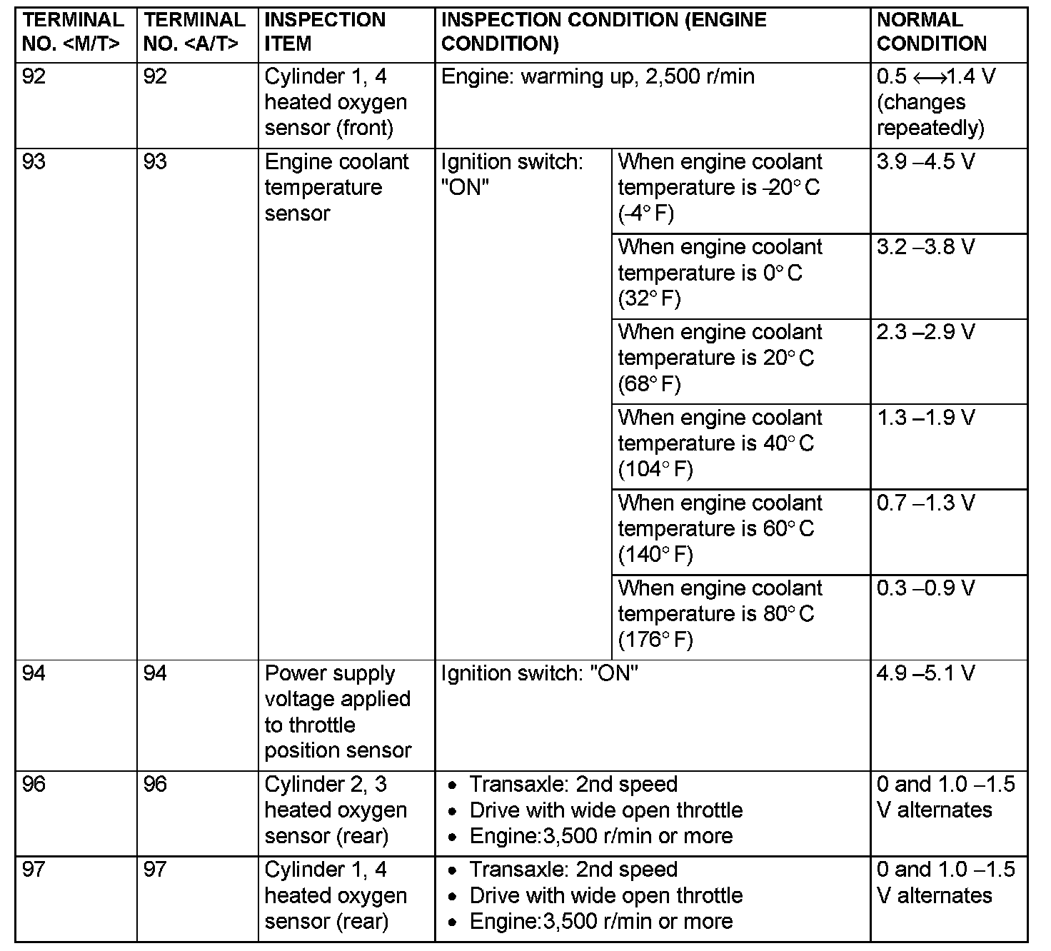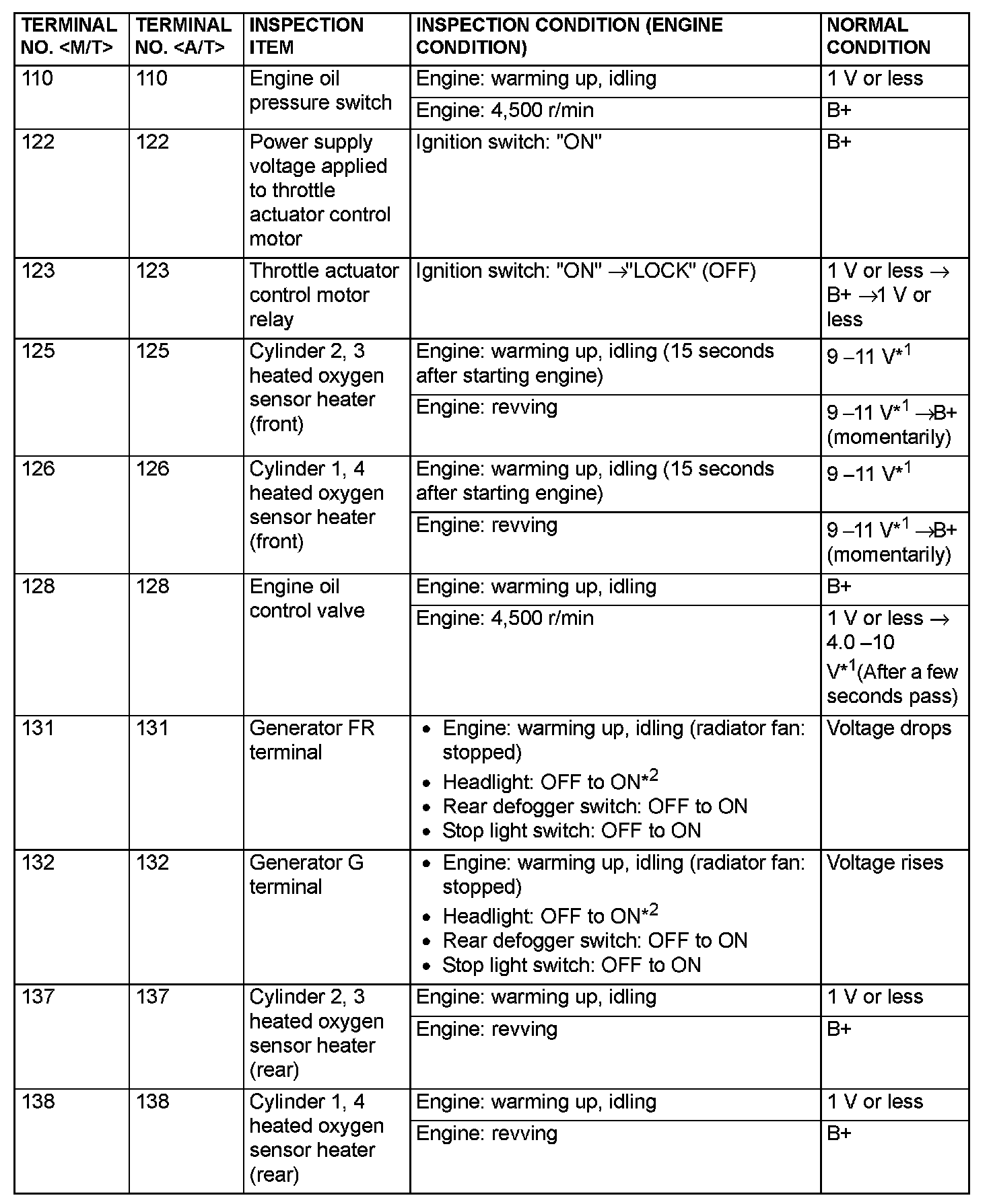Terminal Voltage Check Chart (Part 2):