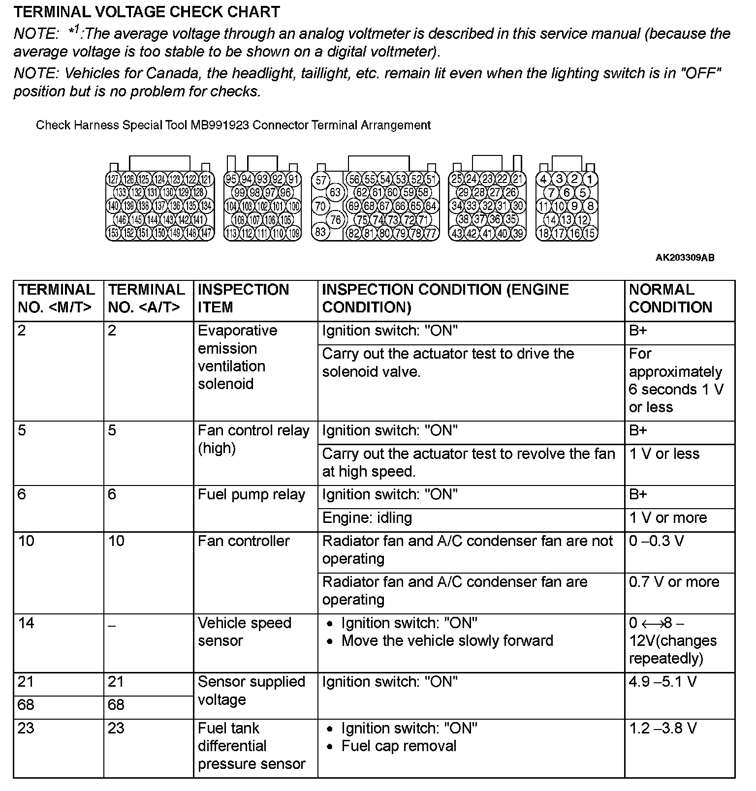 Terminal Voltage Check Chart (Part 1):
