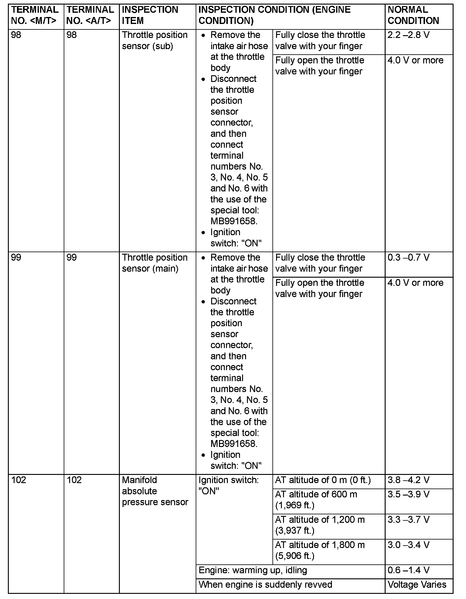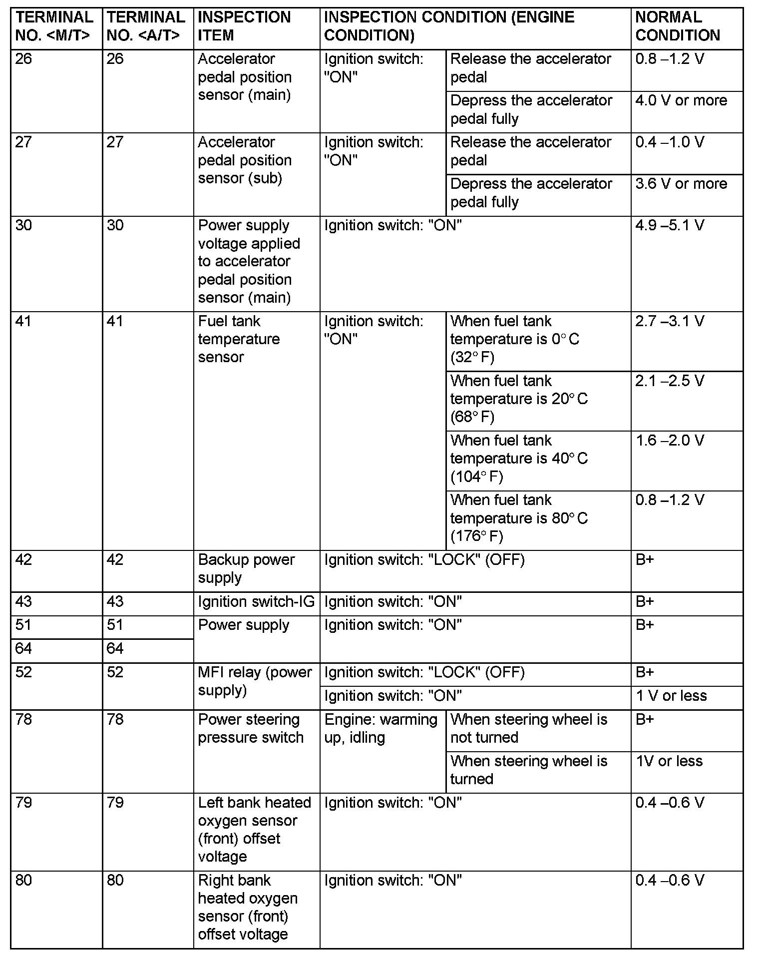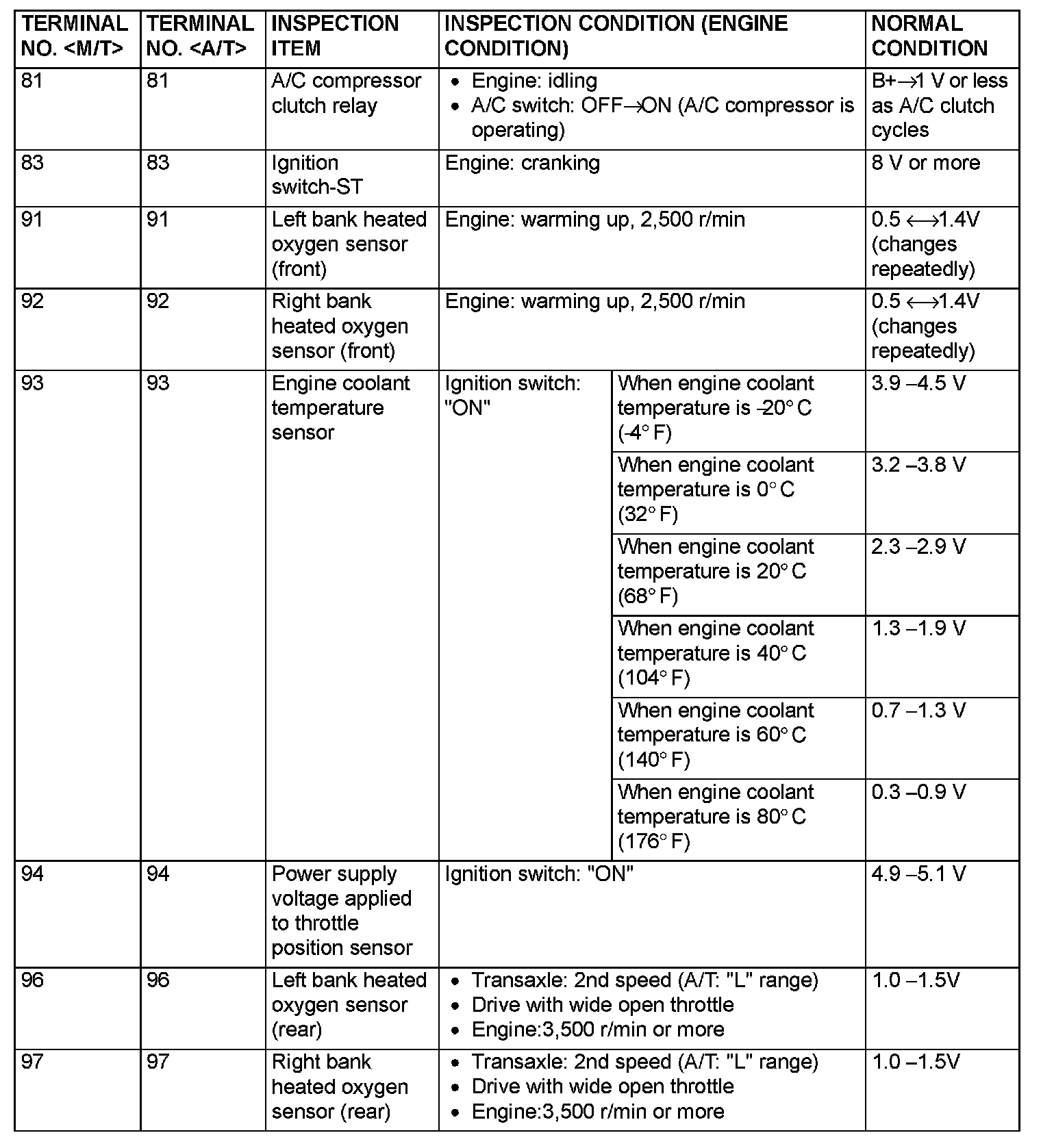 Terminal Voltage Check Chart (Part 7):