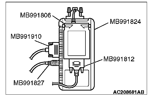 NOTE: When special tool MB991824 is energized, special tool MB991824 indicator light will be illuminated in a green color.