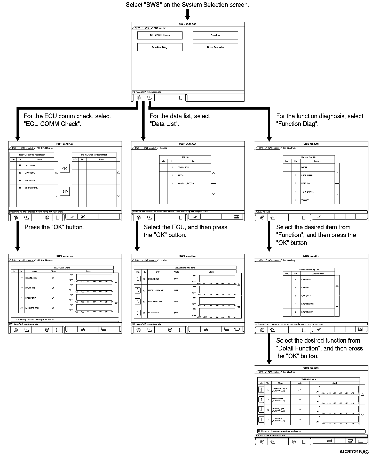 To carry out troubleshooting, operate scan tool MB991958 (M.U.T.-III Sub Assembly) as follows.