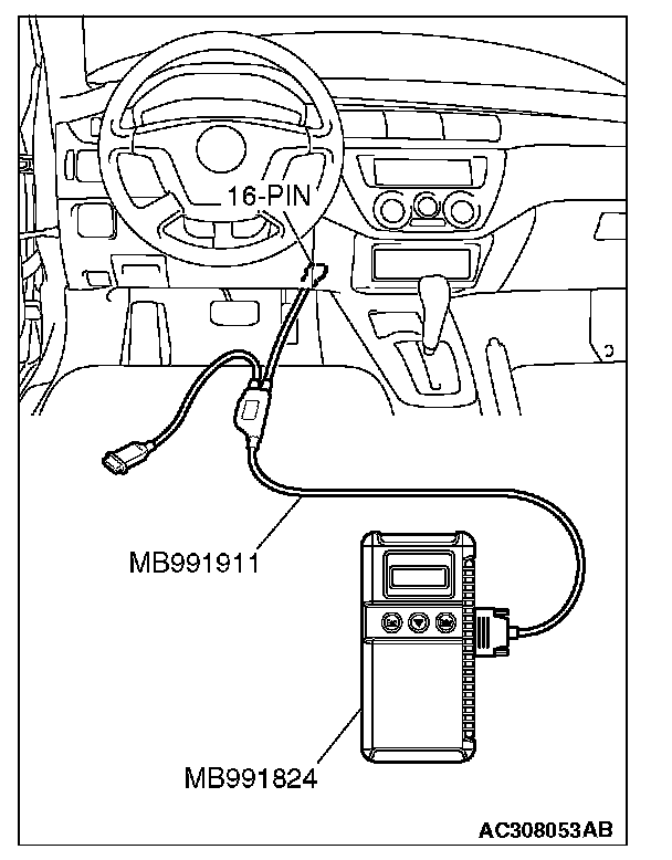 CAUTION: Turn the ignition switch to the "LOCK" (OFF) position and then disconnect vehicle communication interface (V.C.I.) MB991824 from the data link connector.