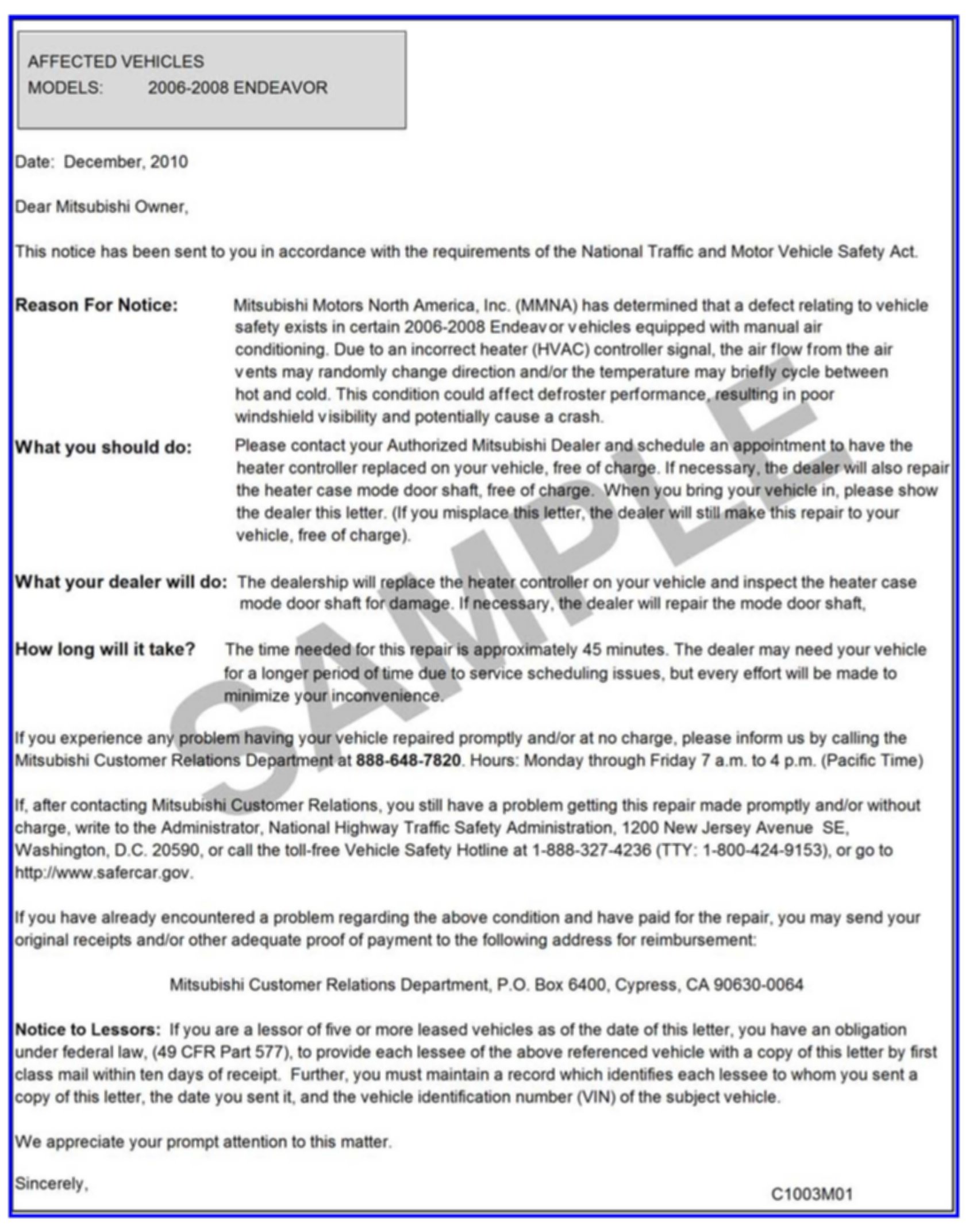 Recall - A/C Controller Replacement