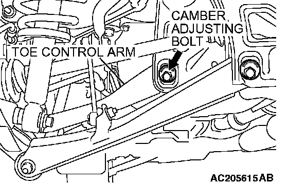 ^ When adjusting the camber, the arms other than the toe control arm should be tightened.