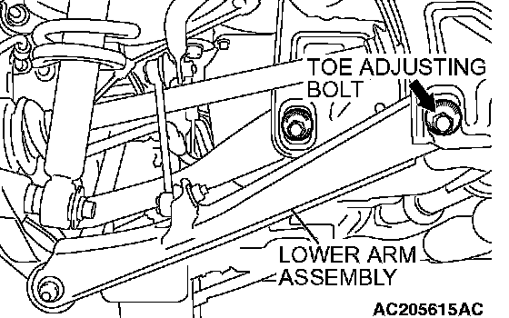 CAUTION: When adjusting the toe, the arms other than the lower arm assembly should be tightened.
