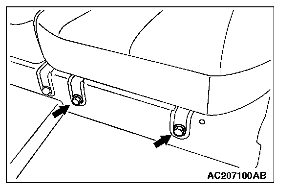 1. Remove the left rear seat cushion mounting bolts, and lift the left rear seat cushion and tie it to the head restraint.