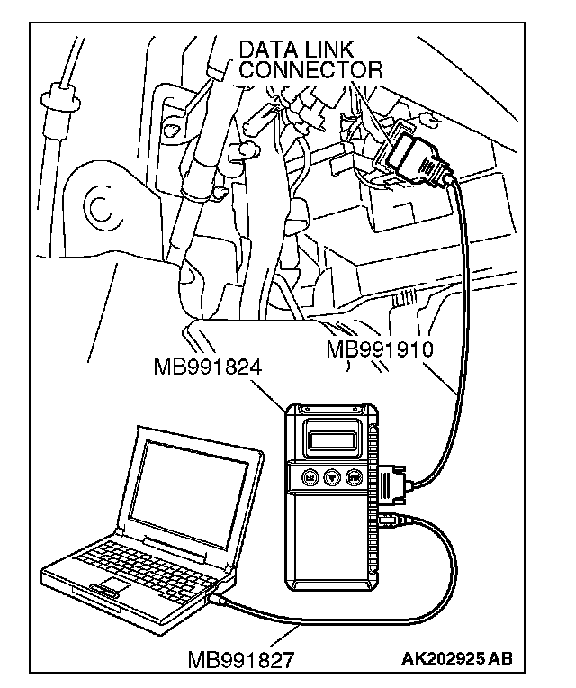 1. Connect scan tool MB991958 to the data link connector.