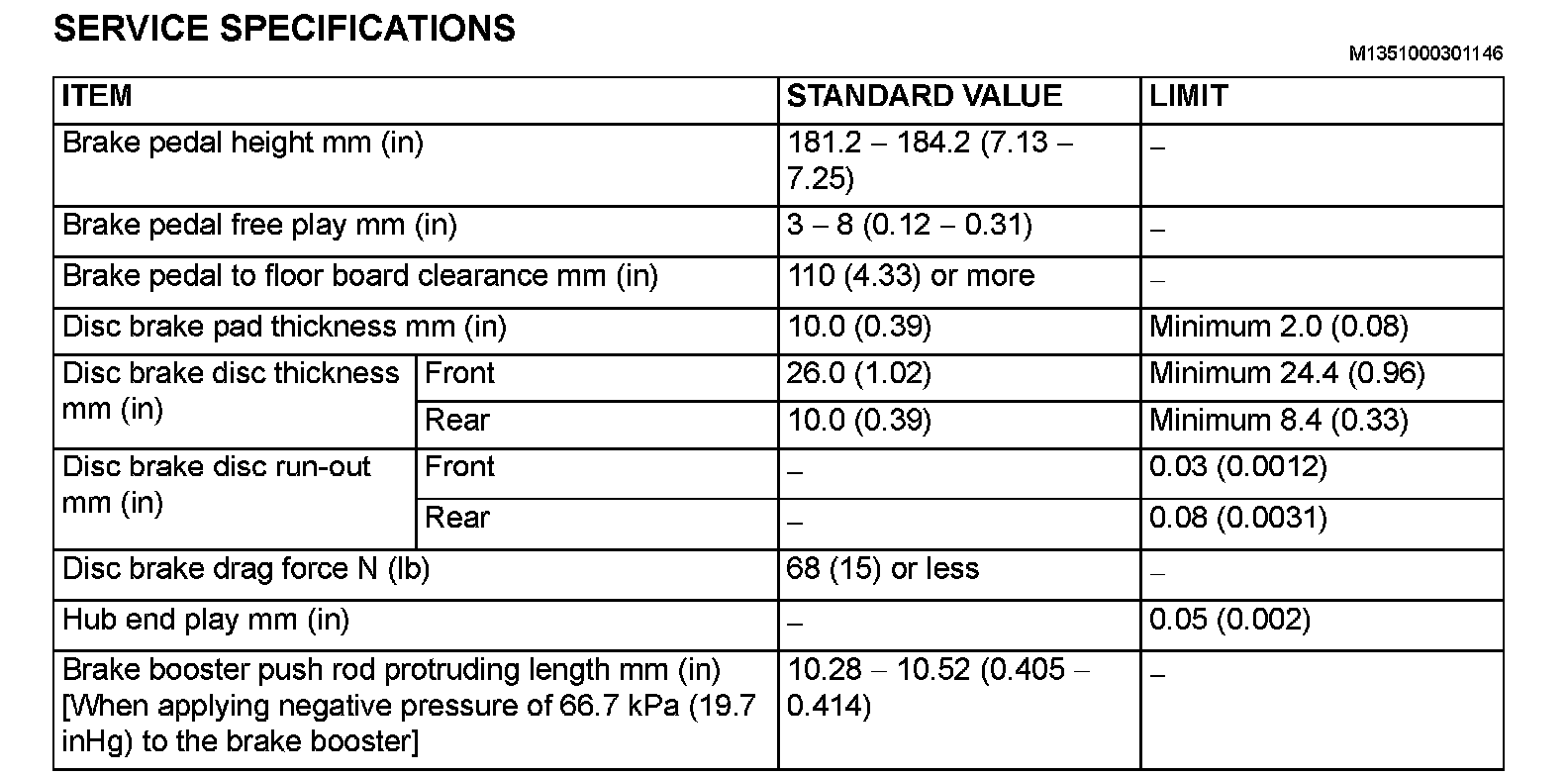 SERVICE SPECIFICATIONS