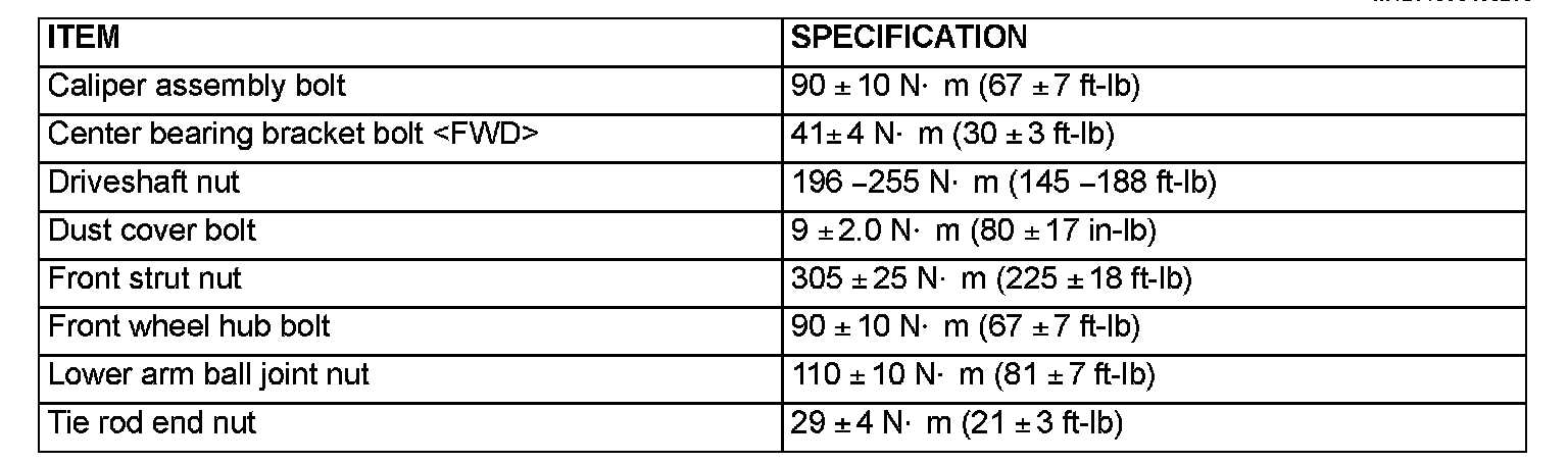 FASTENER TIGHTENING SPECIFICATIONS