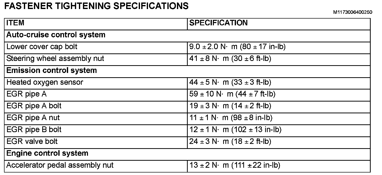 Fastener Tightening Specifications: