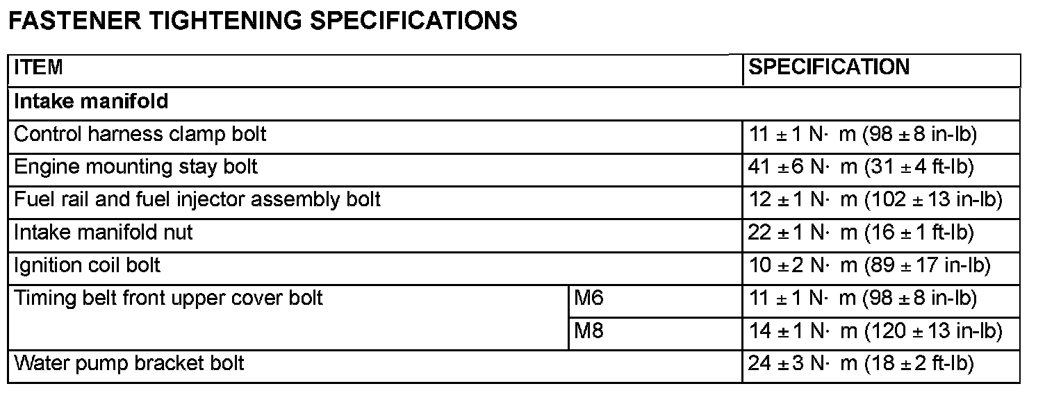 Intake Manifold - Fastener Tightening Specifications:
