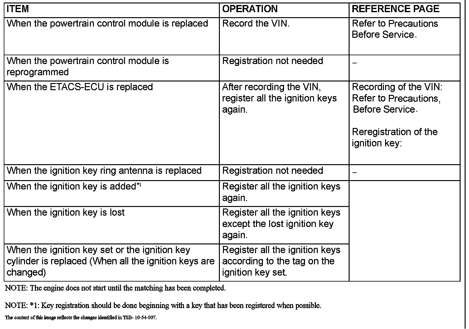CAUTION: Do not replace the powertrain control module and the ETACS-ECU simultaneously. Always replace either one of the ECUs first, and register the encrypted code. Then, replace the other ECU.