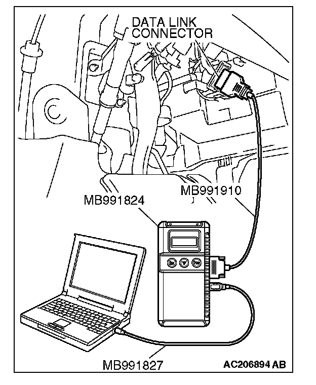 1. Connect scan tool MB991958 to the data link connector.