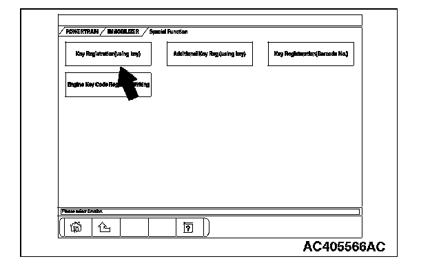 Encrypted Code Registration Using Ignition Key [Registration Using Scan Tool MB991958 (M.U.T.-III Sub Assembly)]