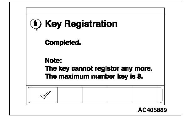 10. A maximum of eight ignition keys can be registered. When the registration of the eighth ignition key is finished, key registration completion menu is displayed. Press the OK button and finish the ignition key registration.