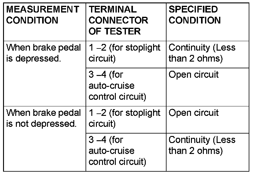 Brake Switch (Cruise Control): Testing and Inspection