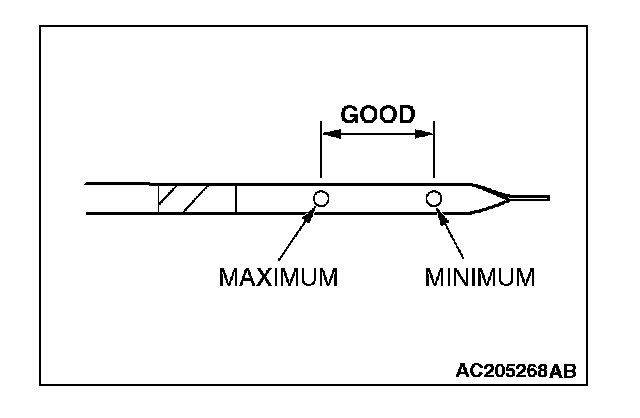 7. Pull out the oil dipstick slowly and check that the oil level is within the marks on the oil dipstick.