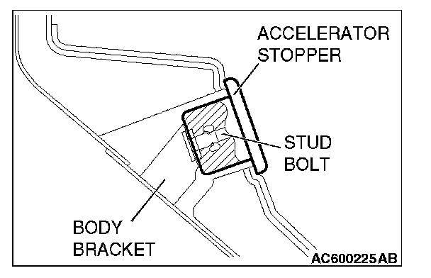 2. Install the accelerator stopper securely by turning it clockwise until its underside contacts with the body bracket as shown in the figure.