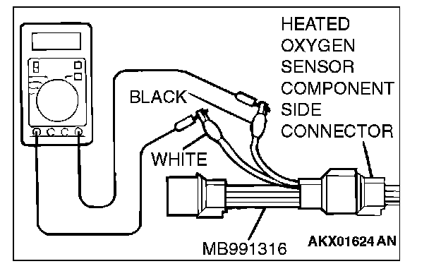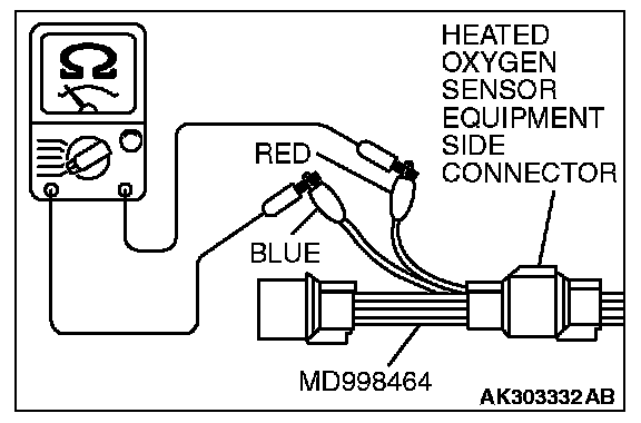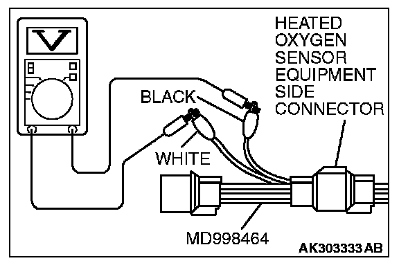 1. Disconnect the heated oxygen sensor connector and connect special tool MD998464 to the connector on the heated oxygen sensor side.
