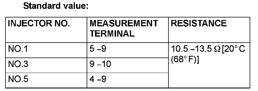 Standard value: 10.5 - 13.5 ohms [at 20 °C (68 °F)]