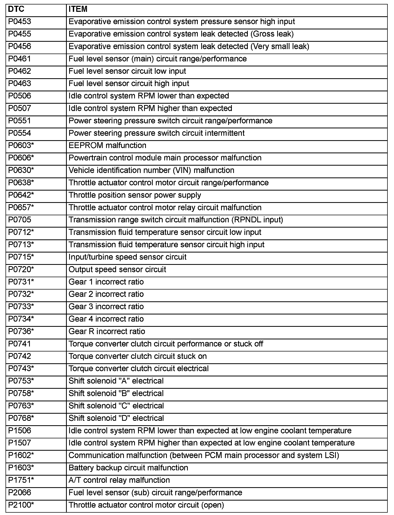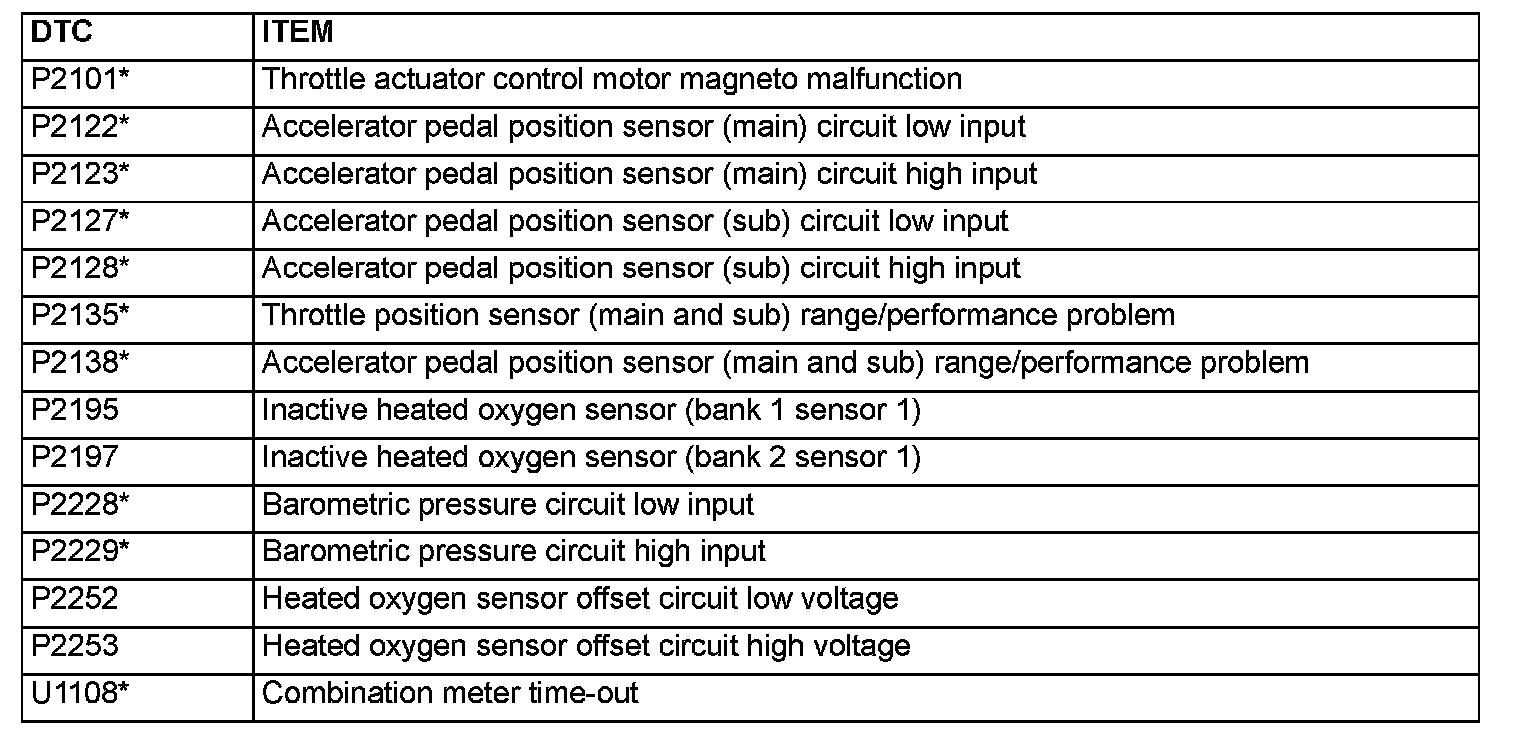 - After the PCM has detected a malfunction, the Malfunction Indicator Lamp (SERVICE ENGINE SOON or Check Engine Lamp) illuminates when the engine is next turned on and the same malfunction is re-detected. However, for items marked with a "*" in the DTC NO. column, the Malfunction Indicator Lamp (SERVICE ENGINE SOON or Check Engine lamp) illuminates only on the first detection of the malfunction.
